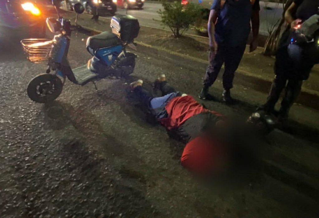 Se trató del derrape de una motocicleta cuyo piloto quedó lesionado, él fue atendido por paramédicos y llevado a un hospital. Los oficiales de Tránsito realizaron el peritaje respectivo del incidente.