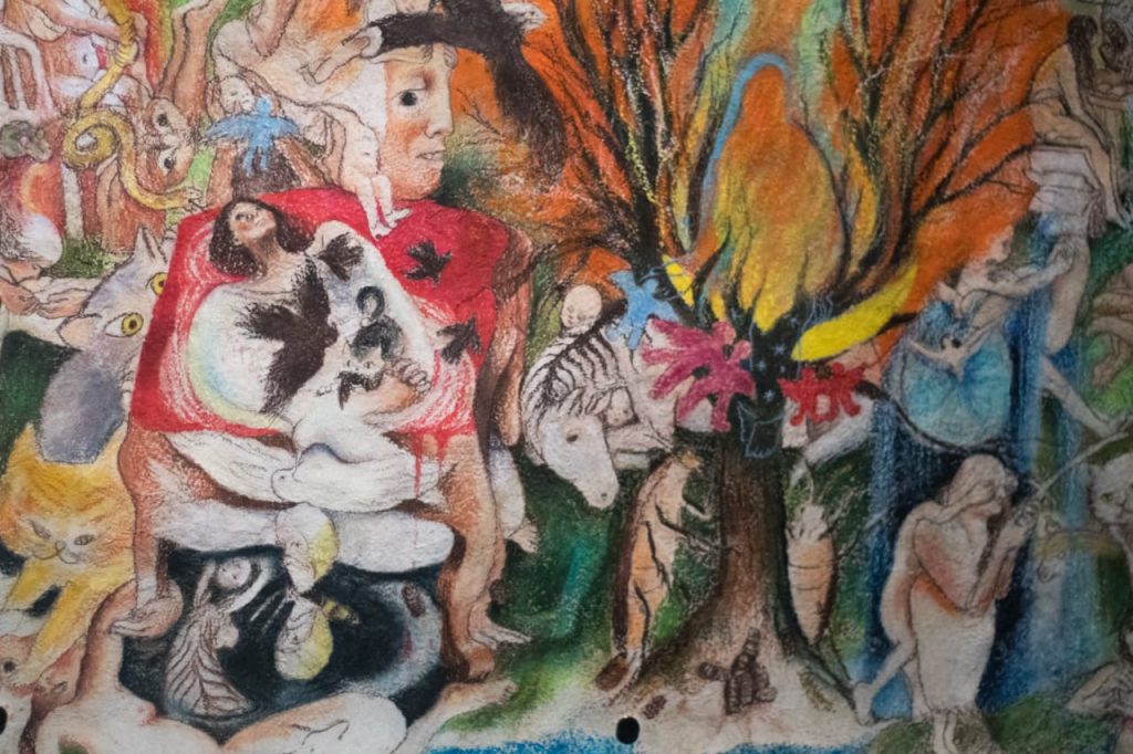 La artista Raquel Palominos compartió que su exposición “Mentiras piadosas”, compuesta por 13 piezas, propone una experiencia abierta a la interpretación personal del espectador. A través del dibujo, la pintura y la instalación, la muestra explora la memoria, infancia e identidad emocional, mediante relatos simbólicos que reinterpretan imaginarios religiosos y personales.