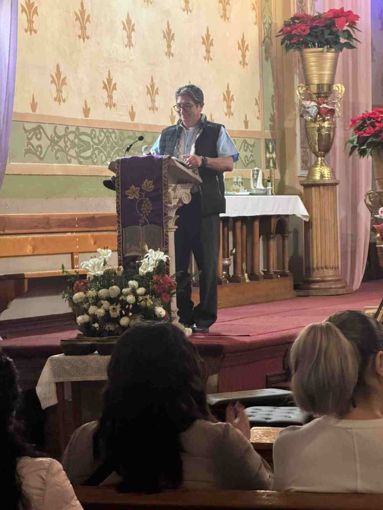El organizador del Festival, Pbro. Faustino Faustino Aguilar Martínez realizó la presentación de la agrupación, en la que destacó la juventud de los integrantes.