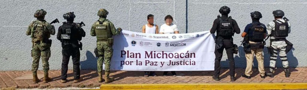 Apatzingán, Michoacán, 7 de enero del 2026.- Como parte de la acciones operativas del Plan Michoacán por la Paz y la Justicia, elementos de la Secretaría de Seguridad Pública (SSP) detuvieron dos objetivos prioritarios en el municipio de Apatzingán, quienes están presuntamente relacionados al delito de extorsión en contra de limoneros de la región.