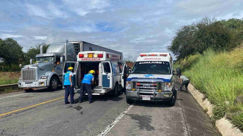 El otro hecho fue en el kilómetro 174, cerca de la comunidad de Las Cañas, municipio de Arteaga, donde un tractocamión Kenworth amarillo con placas 38 BH 6J se salió del camino y chocó contra un paredón.
