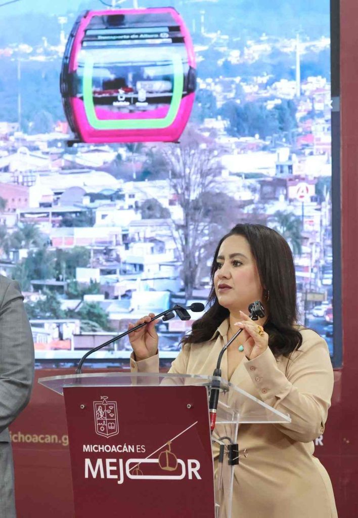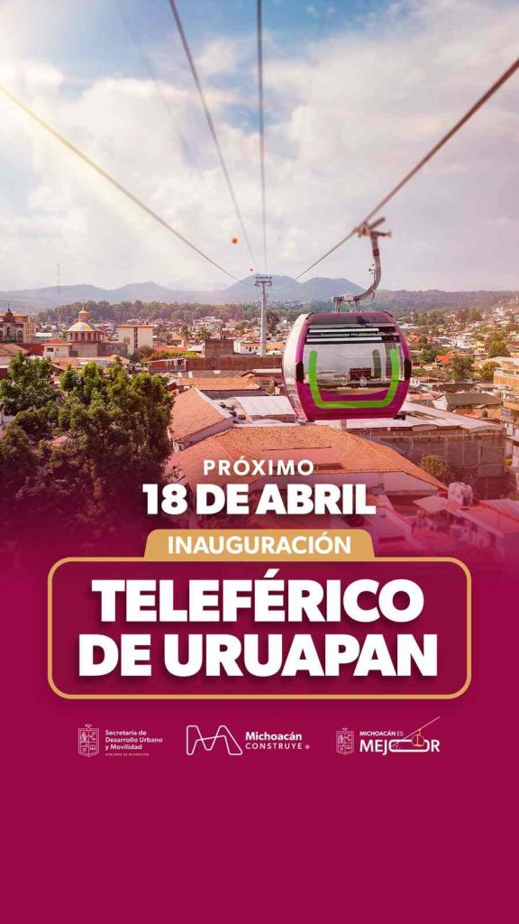 Morelia, Michoacán, 2 de marzo de 2026.- El próximo 18 de abril será inaugurado el teleférico de Uruapan, una obra en la que el Gobierno estatal invierte 3 mil 200 millones de pesos sin generar deuda pública y que beneficiará a más de 118 mil habitantes, así lo señaló el gobernador Alfredo Ramírez Bedolla.
