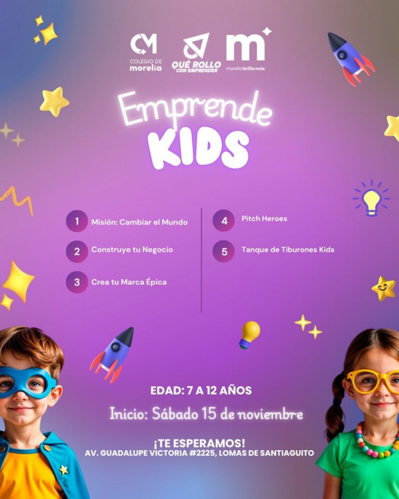 De acuerdo con Iván Fernando Barrales Alcántara, director general del Colegio de Morelia, el taller tiene un programa diseñado para inspirar a los niños a convertirse en agentes de cambio a través del emprendimiento. Durante cinco sesiones interactivas, los participantes desarrollarán habilidades clave mientras crean y presentan sus propios proyectos.