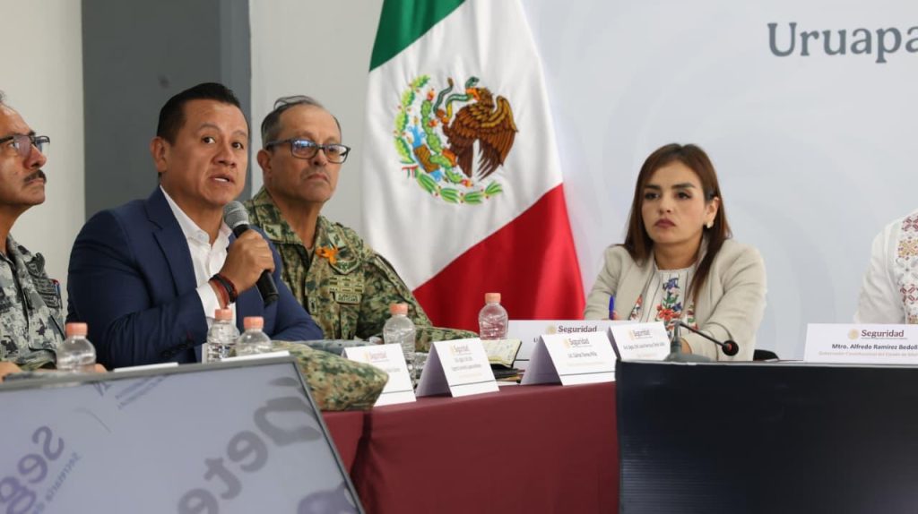 El encuentro contó con la participación del secretario de Seguridad y Protección Ciudadana, Omar García Harfuch; el general Ricardo Trevilla Trejo, secretario de la Defensa Nacional; el general Hernán Cortés Hernández, comandante de la Guardia Nacional; el gobernador Alfredo Ramírez Bedolla; el Fiscal Estatal, Carlos Torres Piña; la alcaldesa Grecia Quiroz, así como autoridades estatales, municipales, legisladores y representantes de corporaciones de seguridad federal y local.
