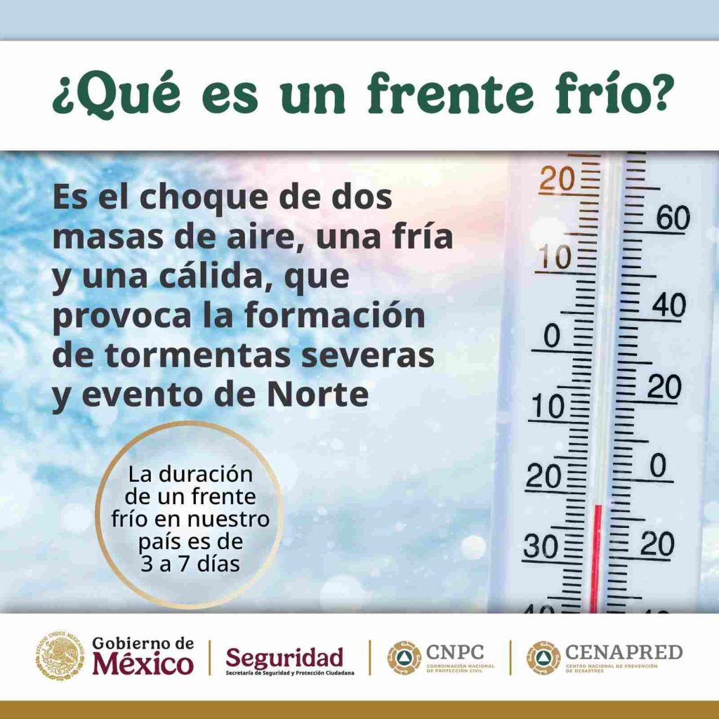 El Gobierno de México, a través de la Coordinación Nacional de Protección Civil (CNPC), de la Secretaría de Seguridad y Protección Ciudadana (SSPC) invita a la población a implementar medidas de autocuidado por el ingreso en las próximas horas del Frente Frío No. 16 al territorio nacional.