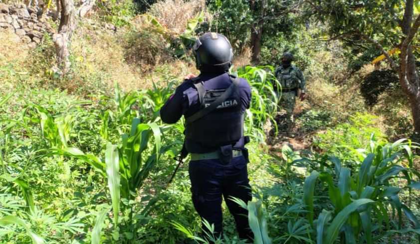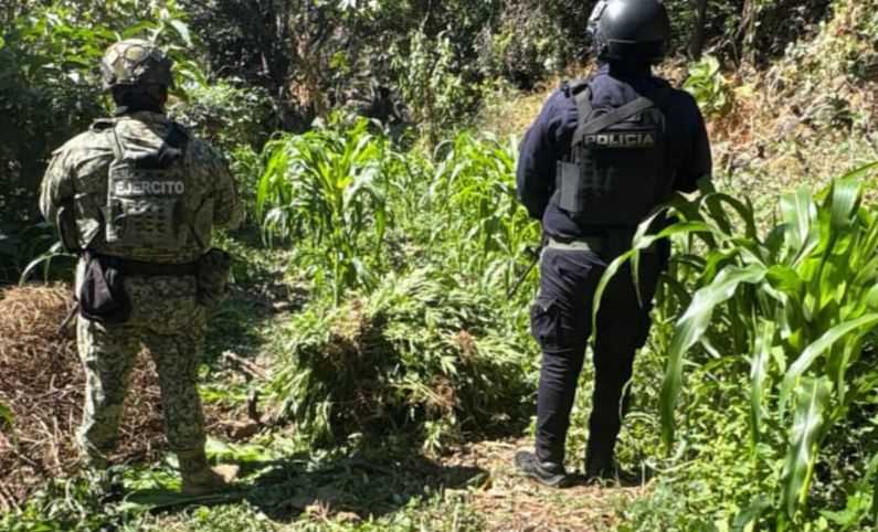 Posteriormente, en la localidad de Santiago Acahuato, las fuerzas estatales y federales localizaron el plantío de marihuana, mismo que fue incinerado conforme a los protocolos de actuación. Asimismo, se desmantelaron siete puntos de observación utilizados para la vigilancia de actividades ilícitas.