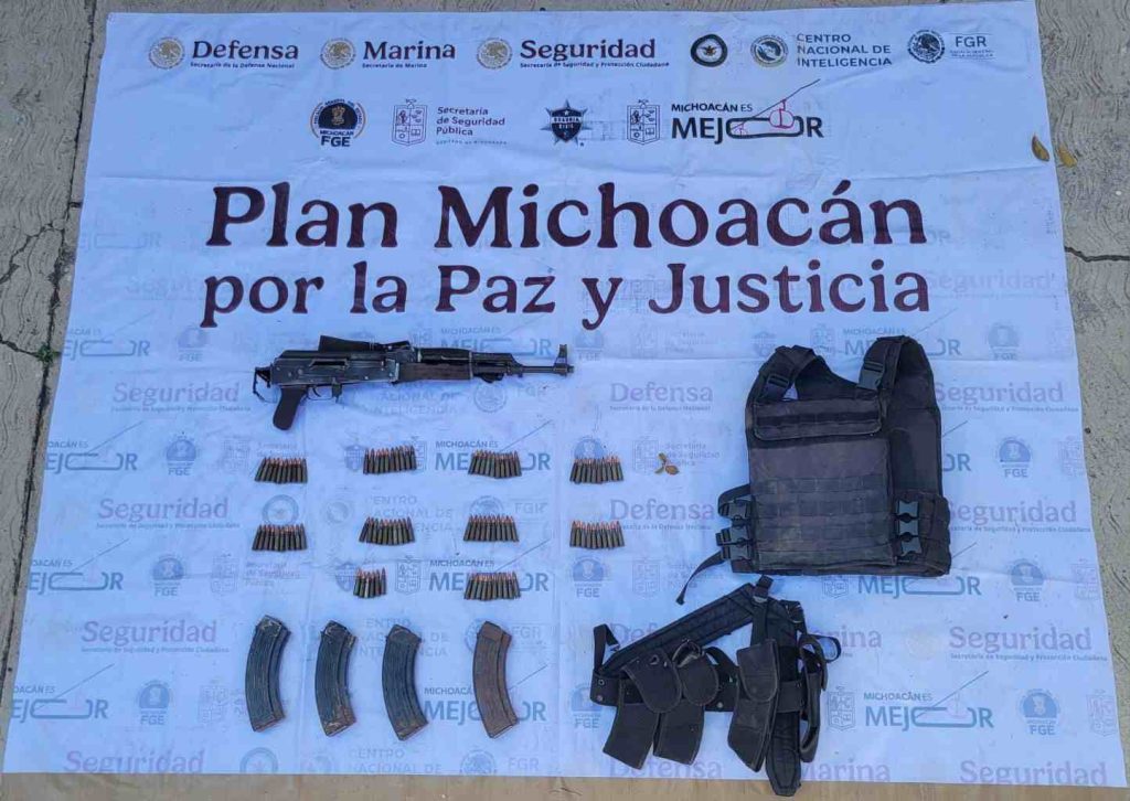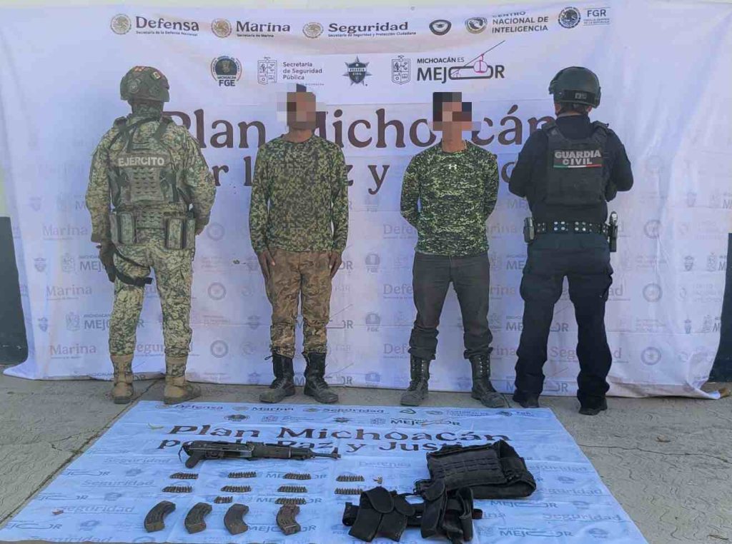Apatzingán, Michoacán, 26 de enero del 2026.- Como resultado de las acciones coordinadas entre elementos de las secretarías de Seguridad Pública (SSP), de la Defensa Nacional (Defensa) y la Guardia Nacional (GN), se logró la detención de dos hombres en posesión de un arma de fuego, la desactivación de ocho artefactos explosivos artesanales y la incineración de 162 plantas de marihuana en cuatro localidades del municipio de Apatzingán.