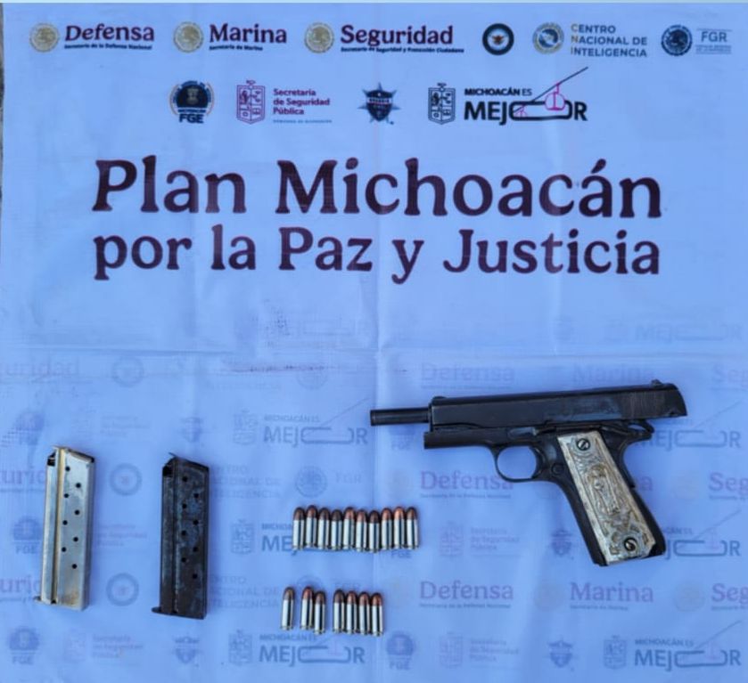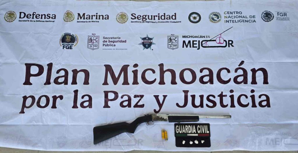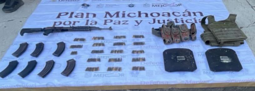 Mientras que en el municipio de Múgica, las autoridades decomisaron otra arma de fuego calibre 7.62X39, un casco y ropa táctica. En otro hecho, en Zamora fueron detenidos dos hombres en posesión de una escopeta y envoltorios que contenían sustancia granulada con las características propias de la metanfetamina.