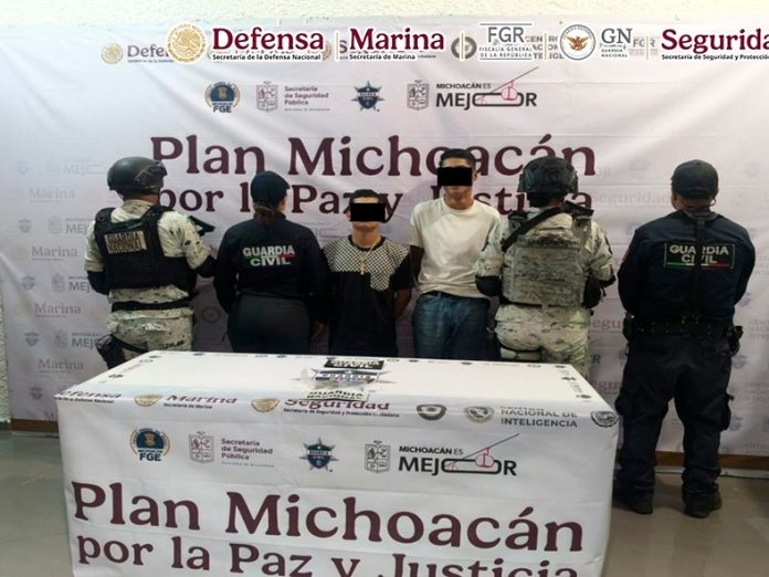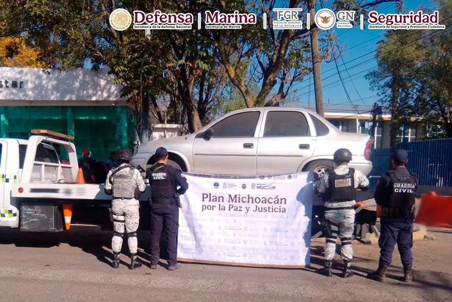 Como parte de las acciones operativas que contempla el “Plan Michoacán por la Paz y la Justicia”, elementos de la Secretaría de la Defensa Nacional (Defensa) y Guardia Nacional (GN), en coordinación con la Secretaría de Marina (Semar), Fiscalía General de la República (FGR) y Secretaría de Seguridad y Protección Ciudadana (SSPC), junto con Secretaría de Seguridad Pública (SSP) y Fiscalía General del Estado (FGE) detuvieron a cuatro personas, aseguraron cuatro artefactos explosivos improvisados y dos vehículos.