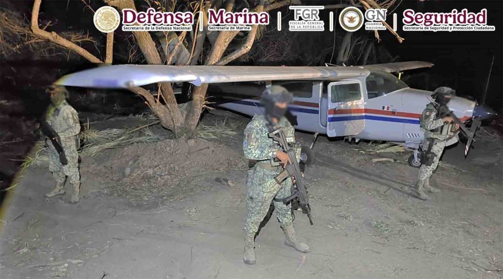 Tras dar seguimiento aéreo, se detectó el aterrizaje de la avioneta en la localidad de Huamúchil, municipio de San Dionisio del Mar, Oaxaca, donde arribaron las fuerzas de seguridad.