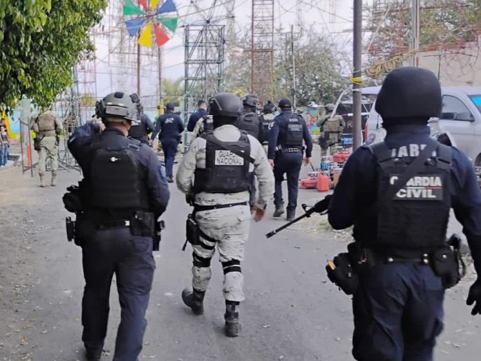 En una acción conjunta, agentes de la Guardia Civil, el Ejército Mexicano, la GN y la FGE se desplegaron en las fiestas patronales de la citada demarcación, donde detectaron una estructura de pirotecnia que exhibía imágenes vinculadas a un grupo delictivo. En el sitio también se localizaron lonas impresas con fotografías de objetivos criminales.