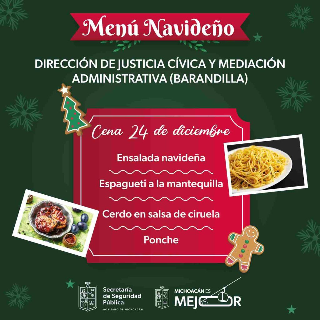 A las y los infractores que cumplan arresto administrativo se les entregará un menú que contiene ensalada navideña, espagueti a la mantequilla, cerdo en salsa de ciruela y ponche.