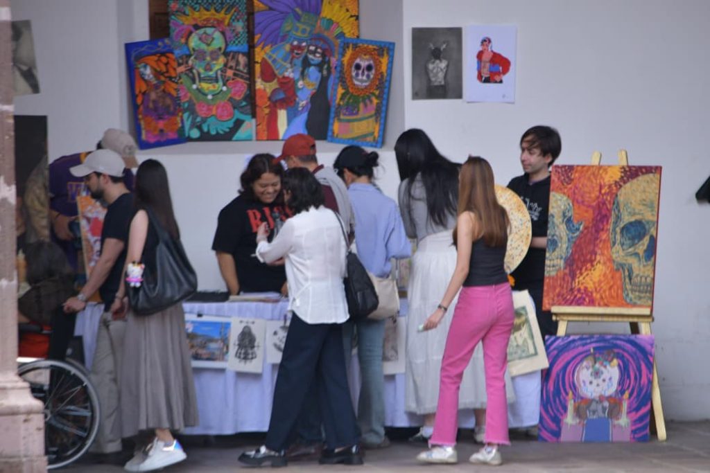 Este espacio se ha consolidado como un encuentro directo entre el público y la comunidad artística local. En esta jornada, las y los visitantes podrán adquirir obra original de gráfica, ilustración, cerámica, bordado artístico y diversas expresiones visuales, todas realizadas por creadoras y creadores michoacanos.