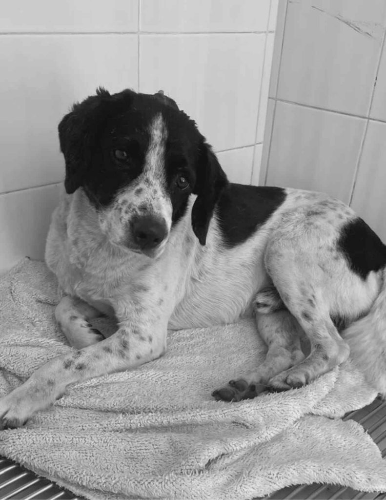 “Huesitos” descansaba sobre la banqueta cuando fue agredido con un machete, un testigo que intentó defenderlo también fue atacado y amenazado, aunque logró ponerlo a salvo. Gravemente herido, el lomito sobrevivió gracias a la intervención de rescatistas locales.