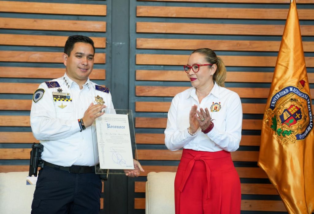 De igual forma, la rectora Yarabí Ávila, destacó la presencia del secretario de Seguridad y Protección Ciudadana de Morelia, José Pablo Alarcón, quien dijo, motiva a las y alumnos, en este marco, agradeció el apoyo que la UMSNH ha tenido por parte de la dependencia municipal cuando se ha requerido, al tiempo que, solicitó seguir contando con su respaldo para que las y los jóvenes nicolaitas caminen tranquilos en las calles.