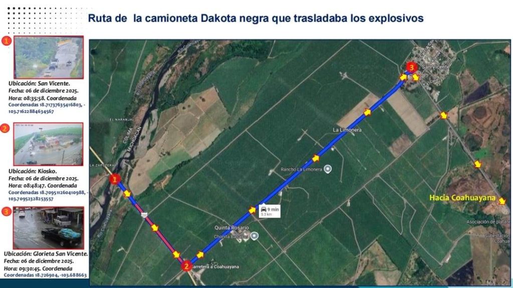 Coahuayana, Mich.- 7 de diciembre 2025.- Las autoridades confirmaron que un vehículo cargado con material explosivo fue detonado justo a las afueras de la base de la Policía Comunitaria de Coahuayana, según el balance oficial, el estallido dejó un saldo de cinco personas fallecidas y siete lesionadas.