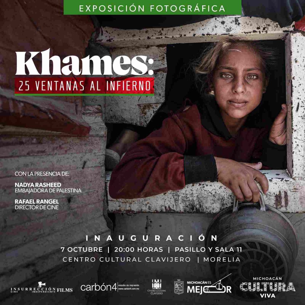 Morelia, Michoacán, 6 de octubre de 2025.- La Secretaría de Cultura de Michoacán (Secum) se suma a la exposición “Khames: 25 ventanas al infierno”, del artista palestino Khames Alrefi, que se inaugurará el 7 de octubre a las 20:00 horas en los pasillos del Centro Cultural Clavijero. La muestra presenta 25 fotografías que retratan el dolor, la resistencia y la esperanza del pueblo palestino.
