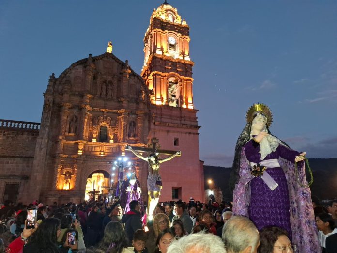 Las imágenes de los 32 Cristos y Dolorosas, además de un Cristo Nazareno, partieron a las 19:00 horas del Santuario de Nuestra Señora del Carmen para recorrer las principales vialidades de la localidad, entre ellas las calles 2 de Abril, Francisco Aguilera, Galeana, Fray Manuel Navarrete, Ignacio Rayón, Torbellino, 5 de Mayo y Robledo. Posteriormente ingresaron por el arco trasero del santuario, informó la Secretaría de Turismo de Michoacán (Sectur), encabezada por Roberto Monroy García.