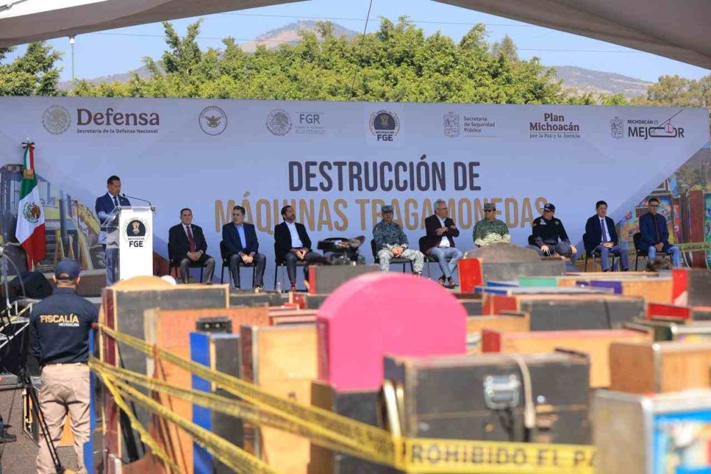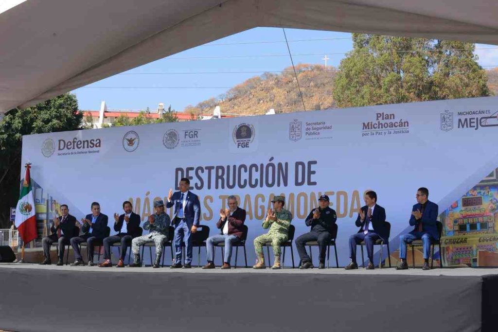 Las máquinas destruidas fueron aseguradas mediante operativos interinstitucionales desplegados en los municipios de Morelia, Uruapan, Apatzingán, Zitácuaro, Lázaro Cárdenas, Zamora, Maravatío y Tacámbaro, derivado de labores de investigación y acciones coordinadas de combate a delitos de alto impacto, entre ellos la extorsión y otras conductas vinculadas a economías ilícitas.