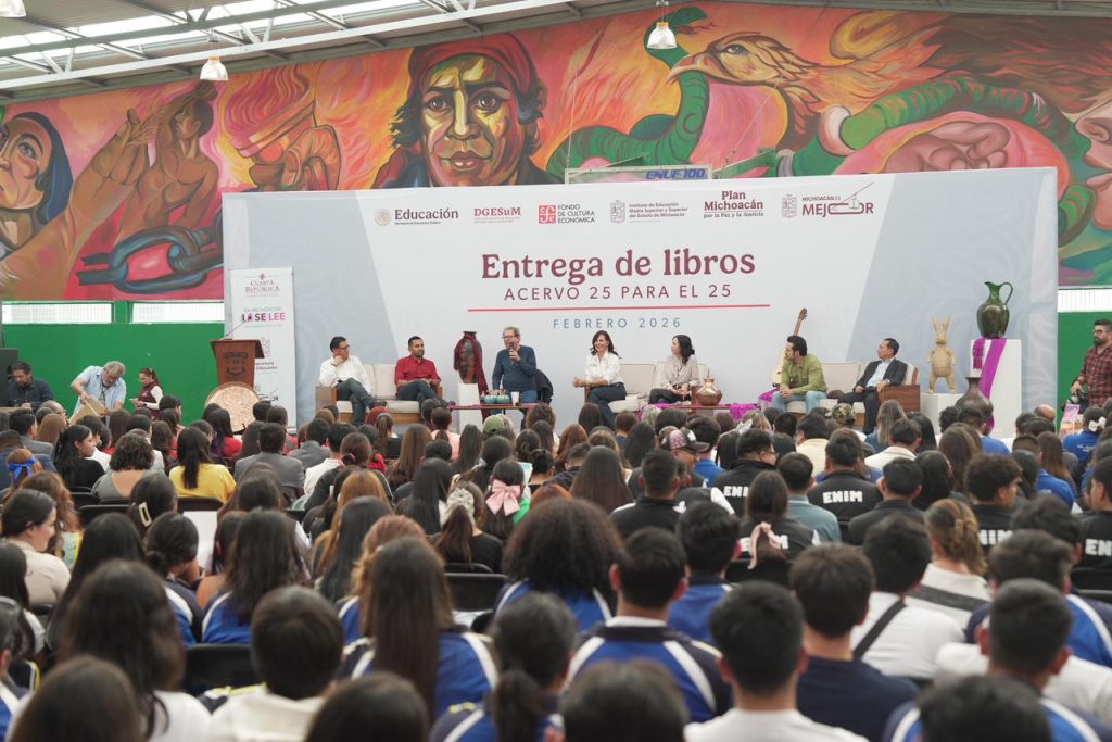Morelia, Michoacán, 20 de febrero de 2026.- Con el propósito de fortalecer la formación académica de las y los futuros docentes se entregaron más de 2 mil libros del acervo “25 para el 25” a las nueve Escuelas Normales Oficiales de Michoacán, como parte de una estrategia nacional para el acceso a la lectura.