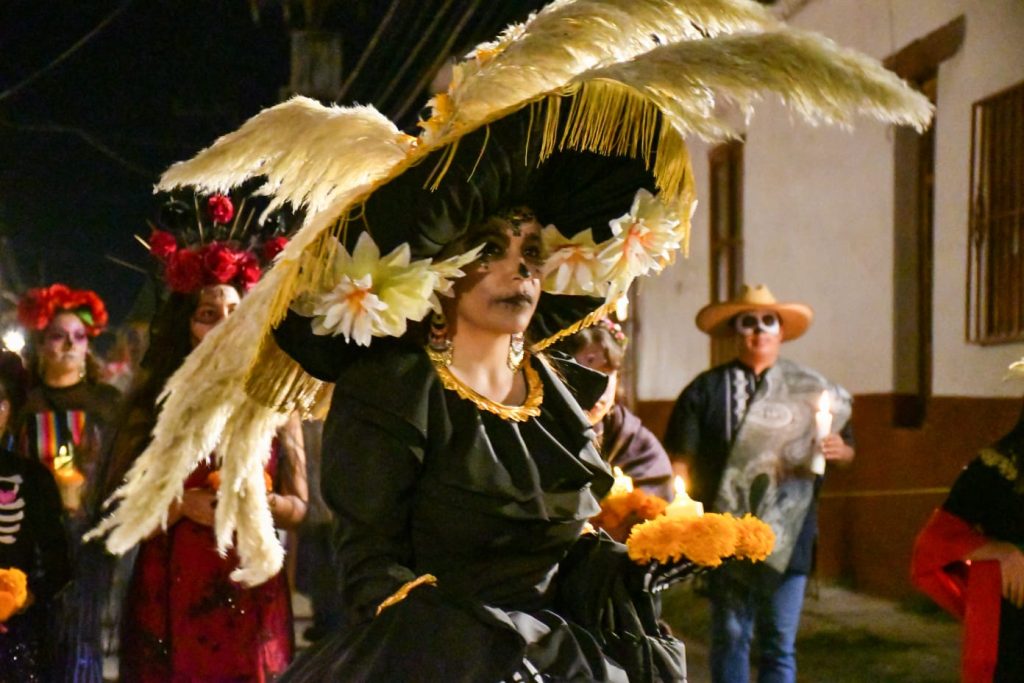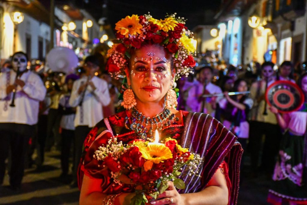 Con un recorrido que iluminó las principales calles del Centro Histórico, el desfile reunió a más de 3 mil participantes caracterizados con atuendos tradicionales purépechas, catrinas y catrines, flores de cempasúchil y veladoras que formaron un auténtico camino de luz y color hacia el corazón de Pátzcuaro.