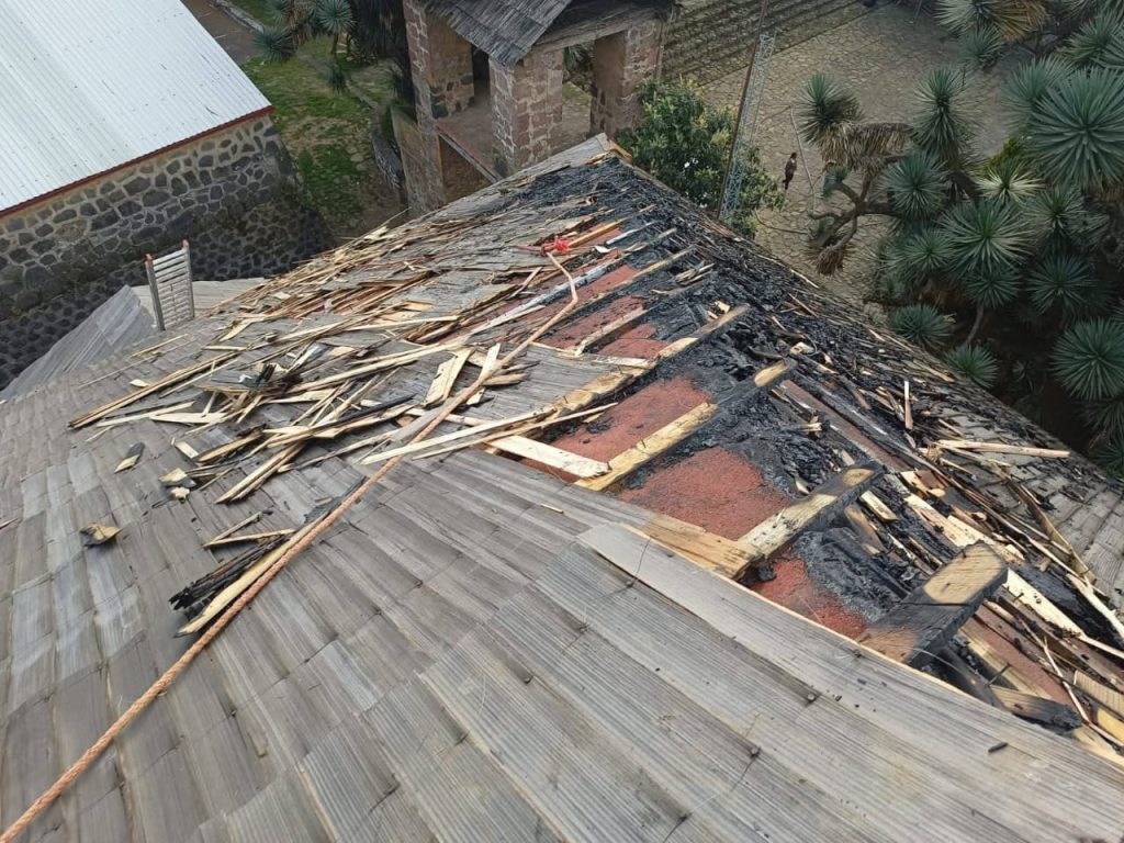 Paracho, Mich, 8 de noviembre de 2025.- Un conato de incendio se registró la tarde de este sábado, en la iglesia de Santiago Apóstol, de esta comunidad de Nurío, el cual fue controlado y sofocado por habitantes del lugar y del Cuerpo de Rescate de Paracho.