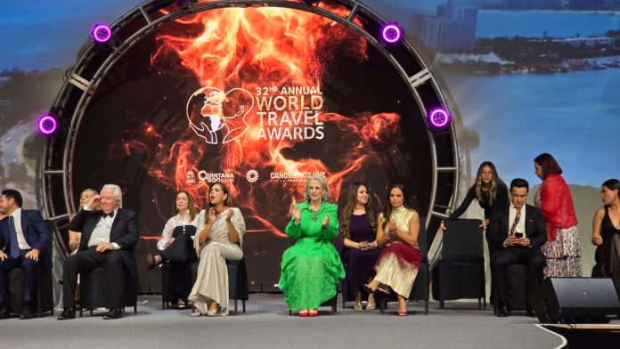Durante la ceremonia de entrega de los Latin American World Travel Awards 2025 en Cancún, Quintana Roo, en representación de la secretaria de Turismo del Gobierno de México, Josefina Rodríguez Zamora, la subsecretaria de Turismo, Nathalie Desplas Puel, recibió el galardón Mexico & Central America’s Leading Destination.