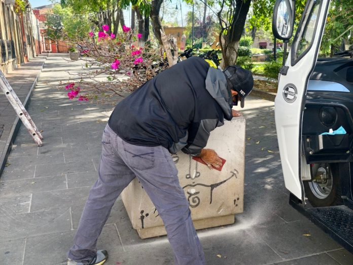 Como parte de estas acciones, se realizaron labores específicas de pintura de los transformadores de luz, atención y limpieza de la nomenclatura del lugar, así como el retiro de grafitis en macetones y bancas, logrando así recuperar la imagen urbana de este importante punto de encuentro para las y los morelianos.