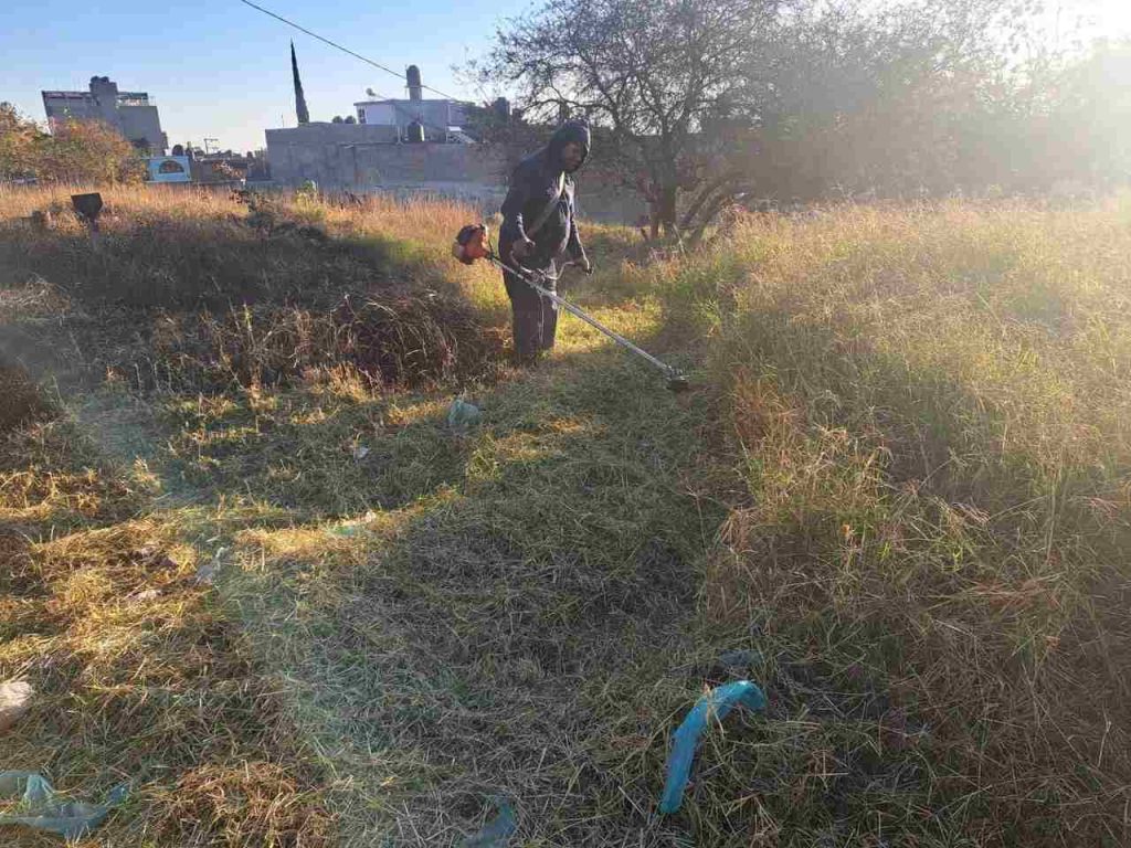 También se lleva a cabo poda de pasto en el Parque Lineal Bicentenario, avanzando desde la calle Jacarandas hasta Combate de Salamanca, en la colonia Ampliación Leandro Valle. Este corredor verde es fundamental para la movilidad peatonal y el disfrute familiar.