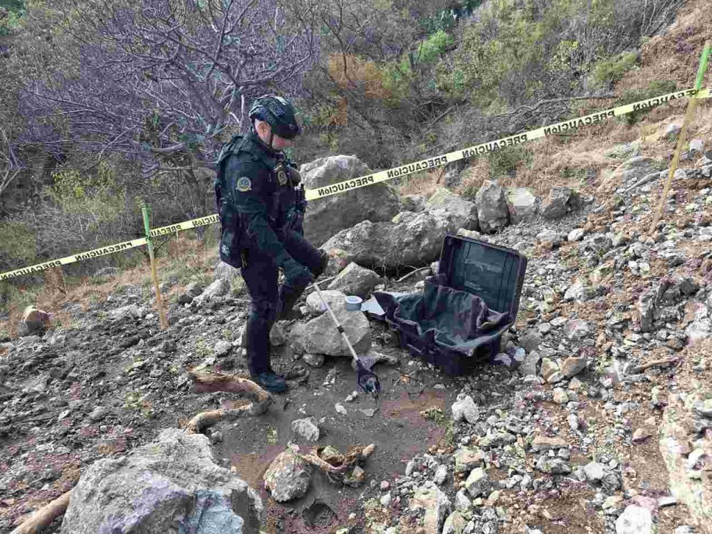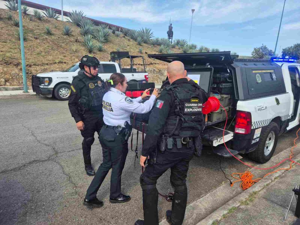 Morelia, Michoacán, 11 de diciembre del 2025.- La Secretaría de Seguridad Pública (SSP), a través del Agrupamiento Especializado en Artefactos Explosivos y Materiales Peligrosos, informó que cerca del mediodía se llevó a cabo el aseguramiento de una granada de gas localizada luego de una excavación realizada en una zona en construcción, localizada en Tres Marías en Morelia, tras un reporte canalizado por el C5i.