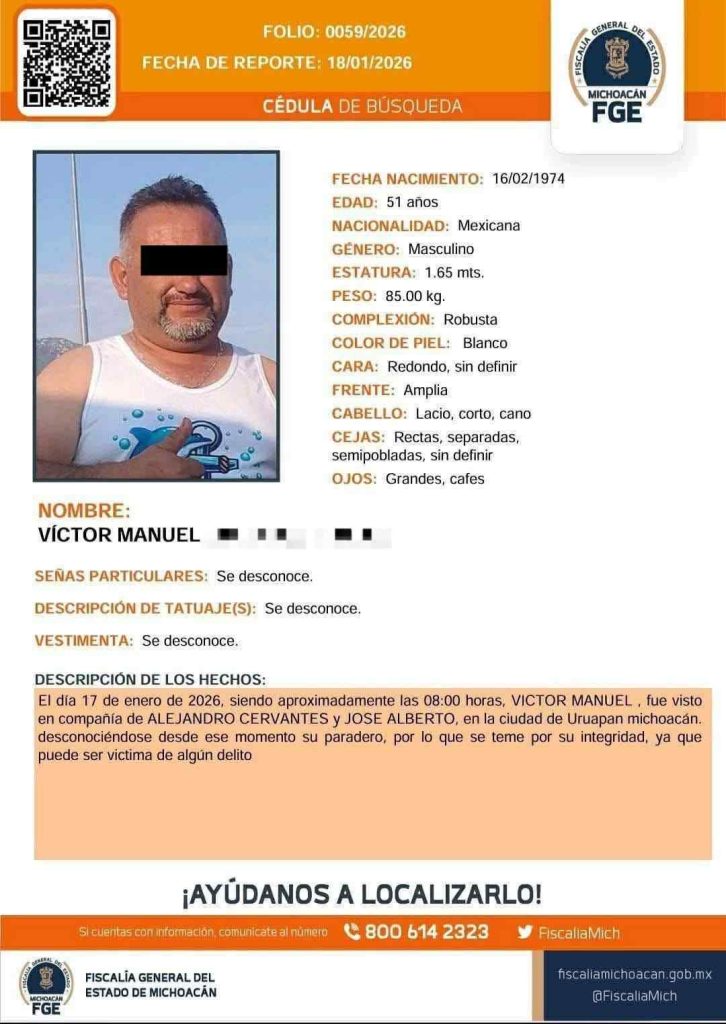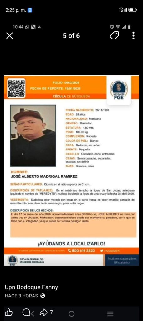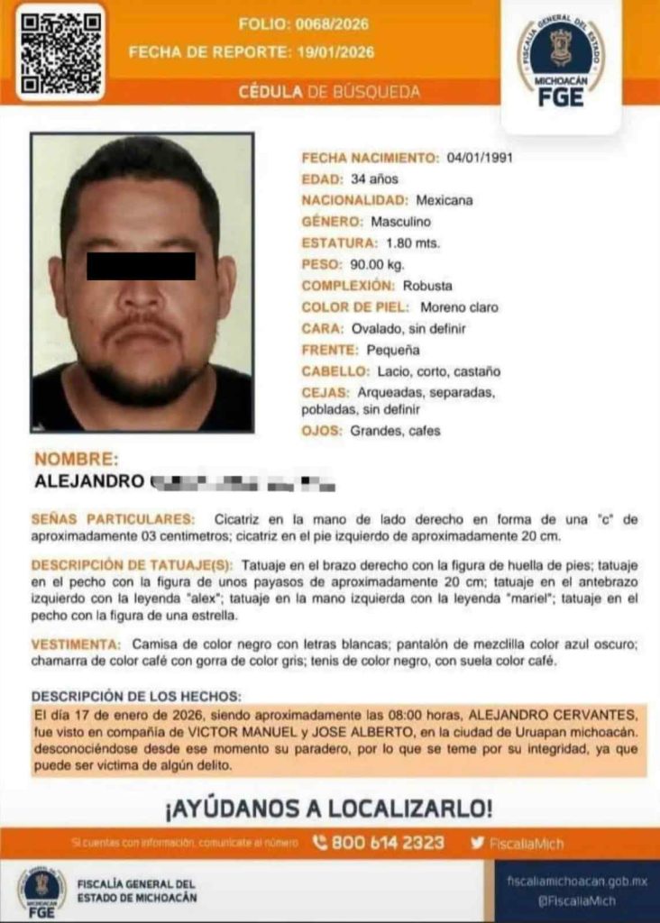 Uruapan, Mich.- 22 de enero de 2026.- En el vecino estado de Guanajuato fueron localizados asesinados tres uruapenses reportados como desaparecidos desde el pasado 17 de enero; el paradero de otro hombre que los acompañaba es ignorado hasta el momento.