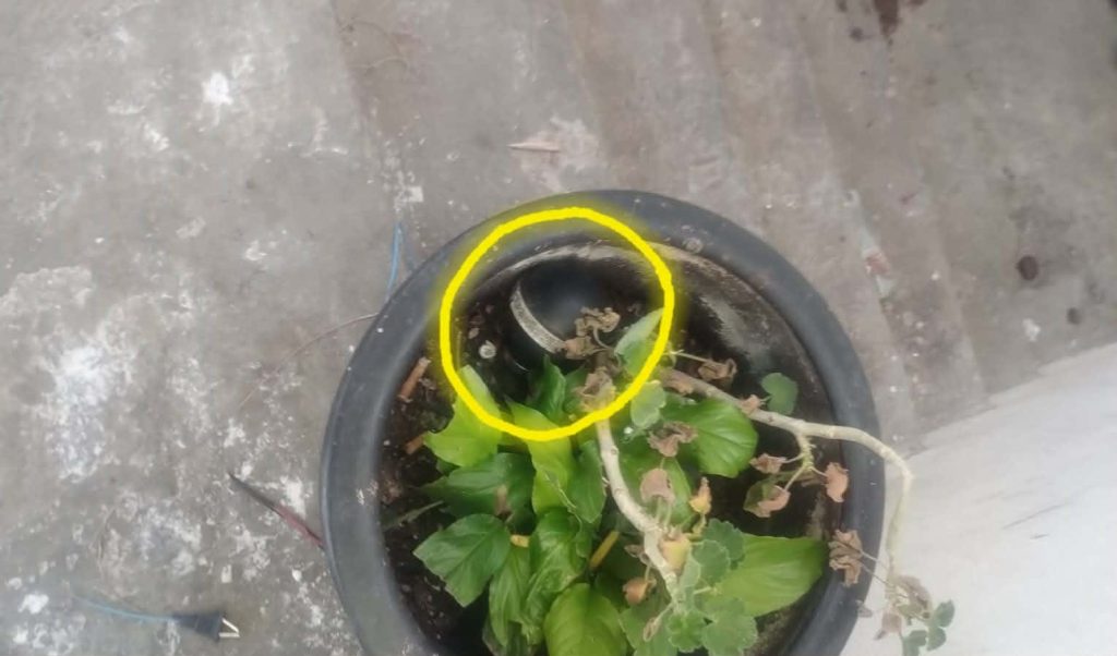 Tarímbaro, Mich.- Domingo 01 de marzo de 2026.- Una granada de gas, la cual estaba dentro de una maceta, fue localizada por unos vecinos del fraccionamiento Hacienda del Sol, en el municipio de Tarímbaro, quienes solicitaron la intervención de las autoridades competentes, informaron fuentes policiales.