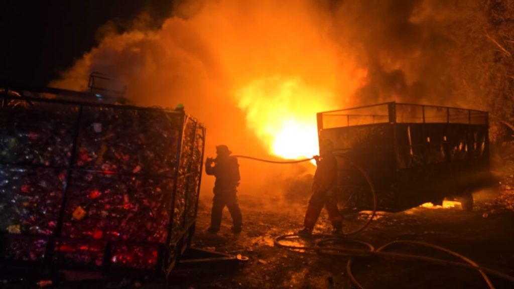 Morelia, Mich.- Jueves 25 de diciembre de 2025.- Durante la madrugada de este jueves se registró un incendio en una recicladora de la colonia Los Ángeles, ubicada en la zona norte de la capital michoacana, informaron autoridades policiales y de rescate.