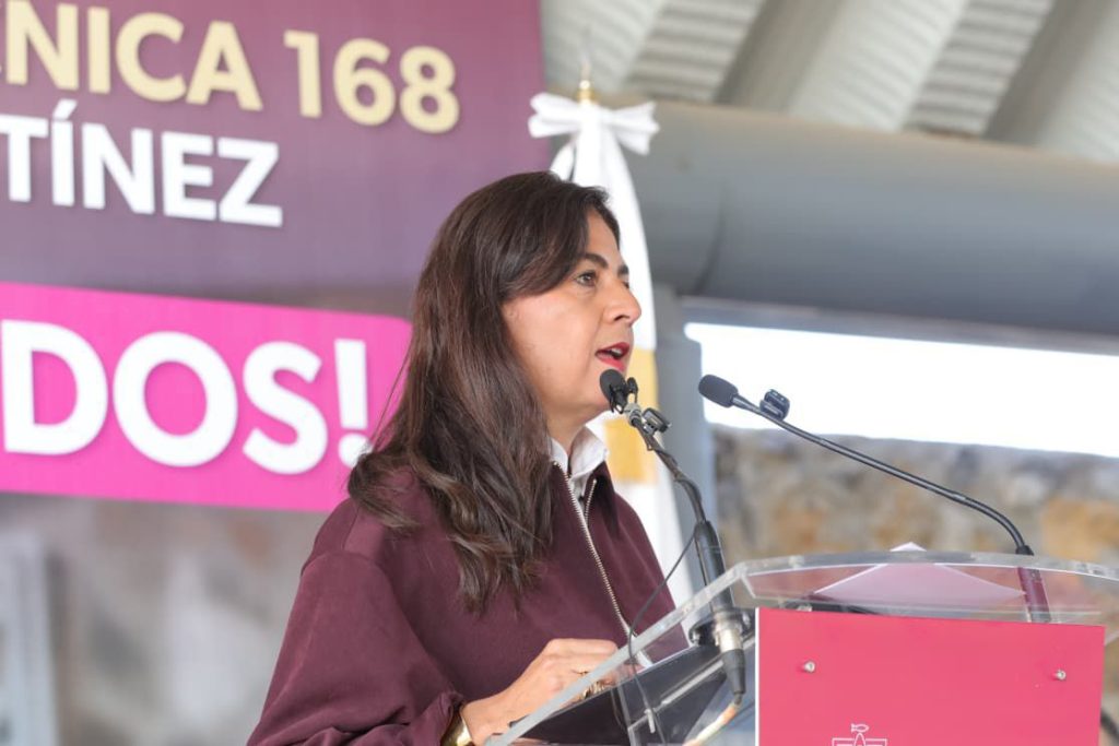 En el caso de la Secundaria Técnica 168, agregó que se construyeron 16 aulas, barda perimetral, andadores, jardineras, plaza cívica, cancha de usos múltiples, comedor, laboratorio, aula de medios, arcotecho y pórtico de acceso con lo que se permitirá ampliar la matrícula de este plantel.