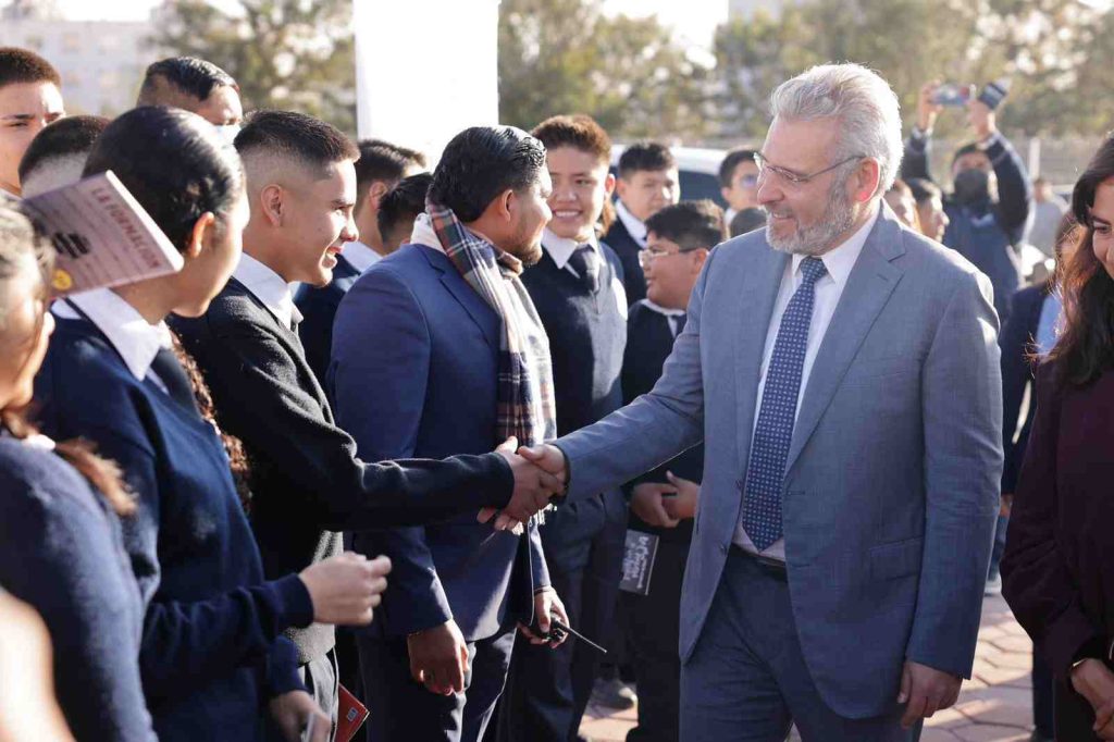 “Hoy es un día de júbilo, un día de emoción, porque van a estrenar aulas, talleres, cooperativa para desayunar; van a tener una escuela de primer nivel”, señaló el mandatario tras puntualizar una inversión de 47.2 millones de pesos de recursos 100 por ciento estatales en esta inmueble.