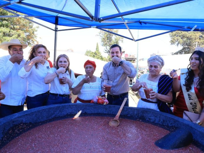 En un ambiente de alegría y respeto a la labor de sus manos, se entregaron los premios al concurso artesanal de molcajete y metate, así como se dieron los toques finales y se repartió la gran salsa preparada para el molcajete monumental.