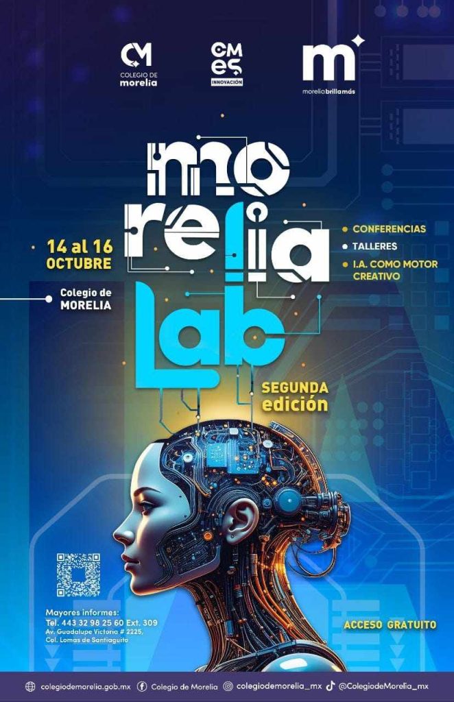 Morelia, Michoacán; 13 de octubre del 2025.- Inició la cuenta regresiva para arrancar la segunda edición del gran evento de tecnología e innovación, Morelia Lab, que se realizará del 14 al 16 de octubre con más de 50 actividades entre conferencias y talleres, en los que la Inteligencia Artificial (IA) será el eje principal como motor creativo.
