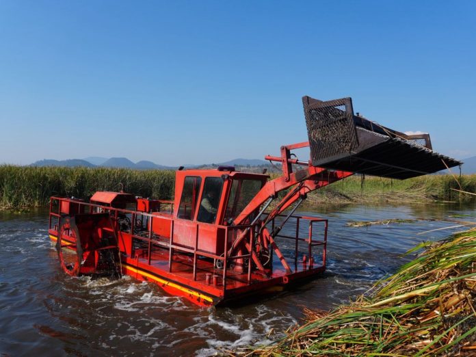 El director general de la Compesca, Ramón Hernández Orozco, informó que la dependencia utiliza maquinaria especializada para el desazolve y la extracción de vegetación invasiva como chuspata y lirio acuático, lo que permitirá restablecer el flujo natural del agua y liberar canales de navegación dentro del lago.