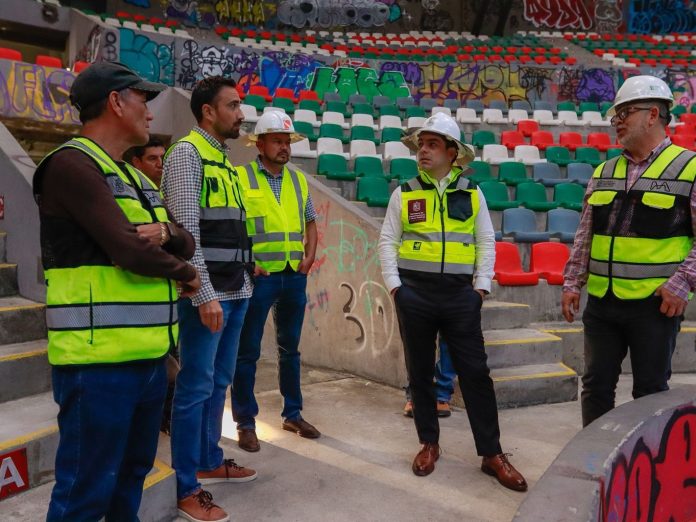 Morelia, Michoacán, 5 de diciembre de 2025.- El titular de la Secretaría de Comunicaciones y Obras Públicas (SCOP), Rogelio Zarazúa, informó que el Gobierno de Michoacán inició los trabajos de rehabilitación integral del auditorio del Complejo Deportivo Bicentenario de Morelia. Esta intervención busca frenar el avanzado deterioro de la estructura, provocado por el abandono institucional, el cual es visible principalmente en el domo de su cubierta.