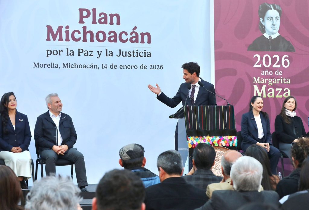 Morelia, Michoacán, 14 de enero de 2026.- El gobernador Alfredo Ramírez Bedolla y la secretaria de Cultura de México, Claudia Curiel de Icaza, presentaron las acciones de trabajo en materia cultural que se pondrán en marcha en el estado, como parte del Plan Michoacán por la Paz y la Justicia, con una inversión histórica federal de 103.3 millones de pesos para beneficio directo de las comunidades culturales.