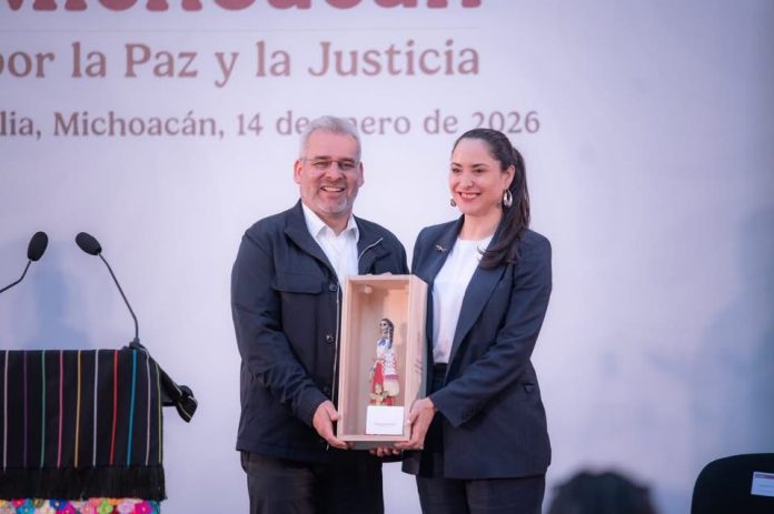 Morelia, Michoacán, 14 de enero de 2026.- El gobernador Alfredo Ramírez Bedolla y la secretaria de Cultura de México, Claudia Curiel de Icaza, presentaron las acciones de trabajo en materia cultural que se pondrán en marcha en el estado, como parte del Plan Michoacán por la Paz y la Justicia, con una inversión histórica federal de 103.3 millones de pesos para beneficio directo de las comunidades culturales.