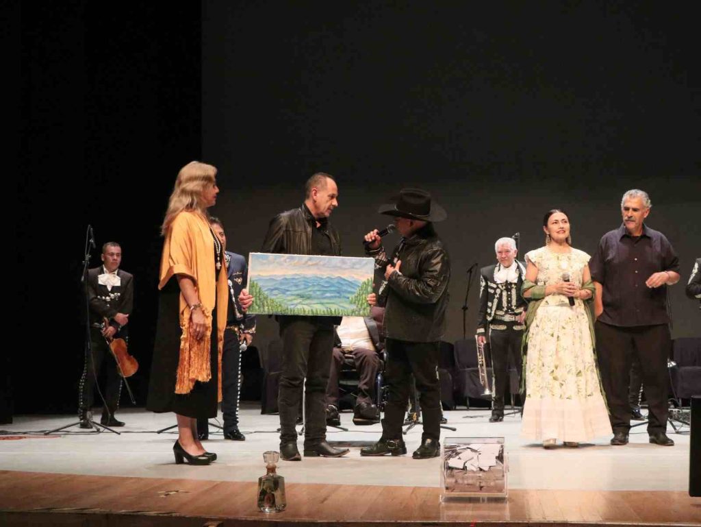El evento se realizó previo al concierto homenaje a José Alfredo Jiménez, una velada que combinó arte y causa social en un mismo escenario. La noche estuvo marcada por momentos profundamente conmovedores, entre ellos la presentación del tema especial “Aquí está José Alfredo Jiménez”, escrito por el maestro José Luis López Pedraza, así como la subasta de un paisaje representativo de Mil Cumbres del pintor Chon Gutiérrez, quien próximamente será intervenido quirúrgicamente.