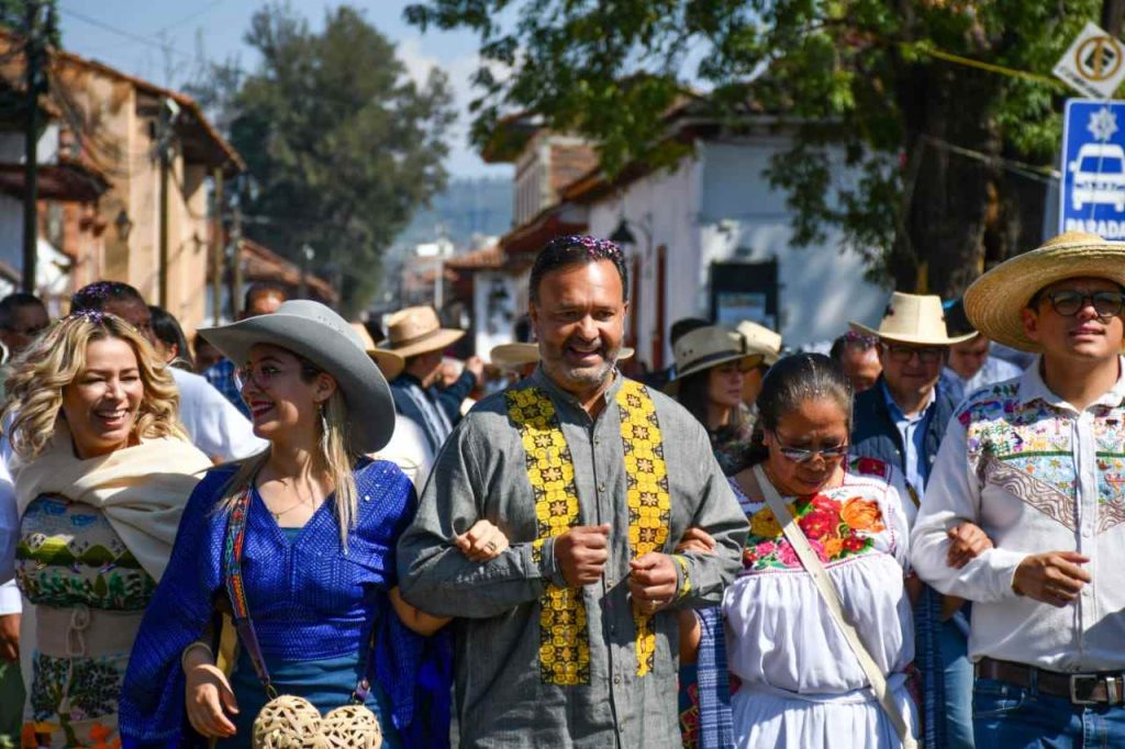 Pátzcuaro, Michoacán, 26 de octubre de 2025.- El presidente municipal Julio Arreola encabezó el Desfile Artesanal y la inauguración del Tianguis de la Noche de Ánimas Pátzcuaro 2025, uno de los eventos más representativos del municipio y de todo el estado, que reúne a más de 350 artesanas y artesanos de distintas regiones de Michoacán.