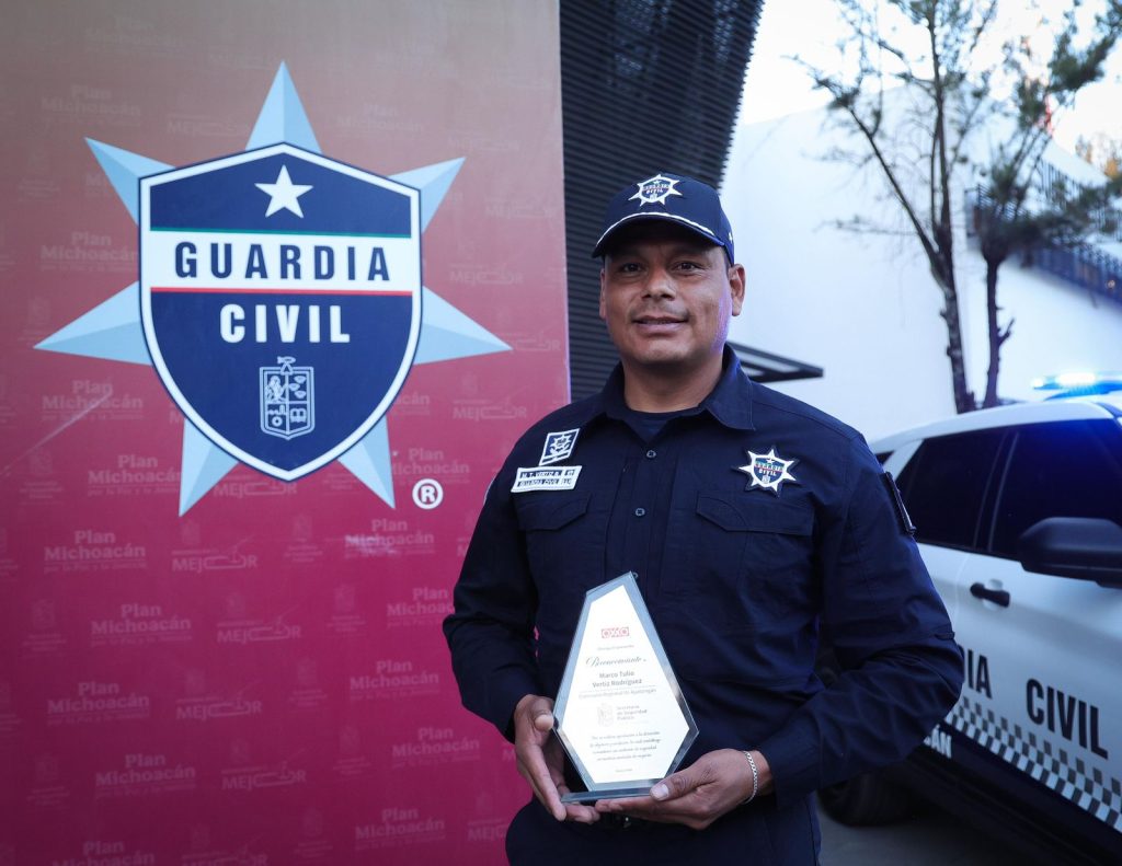 Morelia, Michoacán, 20 de marzo de 2026.- Como resultado del trabajo coordinado en materia de seguridad y videovigilancia, la cadena comercial OXXO entregó reconocimientos a personal de la Secretaría de Seguridad Pública (SSP), por las acciones conjuntas que han permitido fortalecer la prevención del delito y la detención de objetivos relacionados con diversos robos registrados en la capital michoacana y otros puntos del estado.