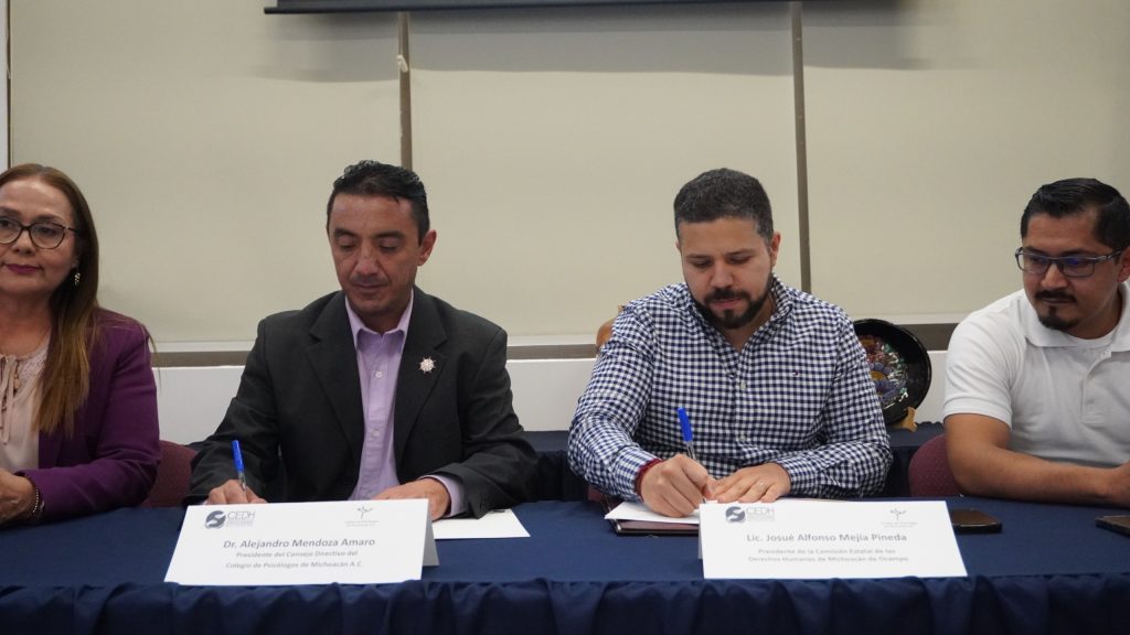 Además, el Colegio brindará atención psicológica, tanto a usuarios como al personal de la CEDH, a costos accesibles, así como apoyo en la realización de peritajes psicológicos psicológicos en materias civil, laboral, familiar y penal.
