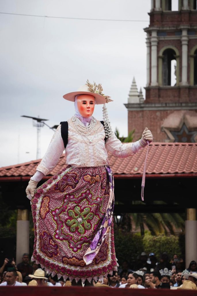 El atuendo de los danzantes incluye delantales artesanales bordados por novias o amigas y ajustados al torso. Sobre estos se porta una manga de lana similar a un sarape, decorada minuciosamente con aplicaciones de lentejuela y chaquira que otorgan identidad a la vestimenta actual.