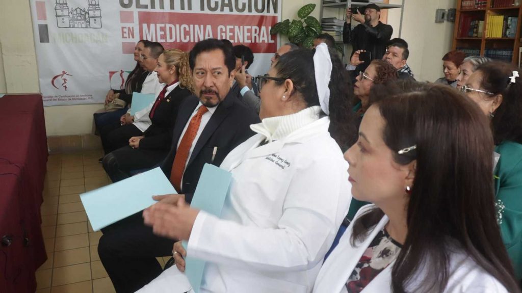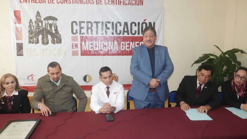 En la sede del Consejo Nacional de Certificación de Medicina General del Estado de Michoacán, cuyo salón lució abarrotado de médicos y sus familias acompañantes, el presidente del Colegio de Médicos de Michoacán agregó que dicha instancia apoya todas las acciones de los colegios, asociaciones y sociedades médicas en cuanto a la educación médica continua, la profesionalización y la capacitación constante.