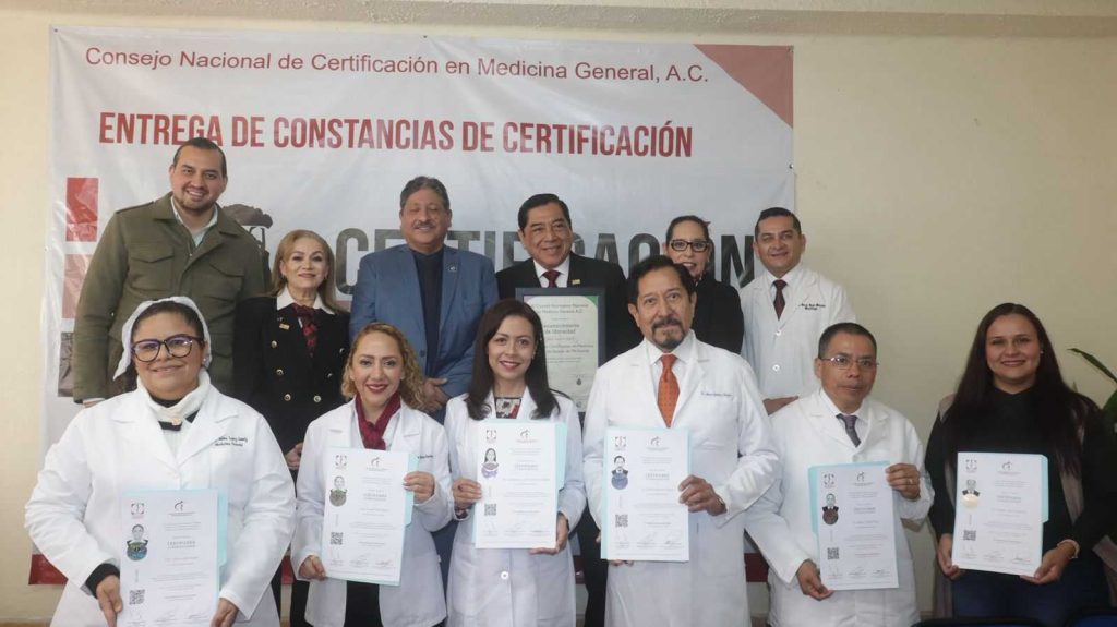 Así pues, recibieron sumarse certificación y recertificación, las y los médicos generales: Minerva Estrada Contreras, Guadalupe Juana María Naranjo Salgado, Missouri Elvira Raya Arellano, Álvaro Gutiérrez Vázquez, Herbert Ticate Pérez, Yulma López Gómez, Claudia Rojas Soriano, Luis Rafael Álvarez Bribiesca, Marisela Romero Ávalos y Salvador Yafoya Camarena.