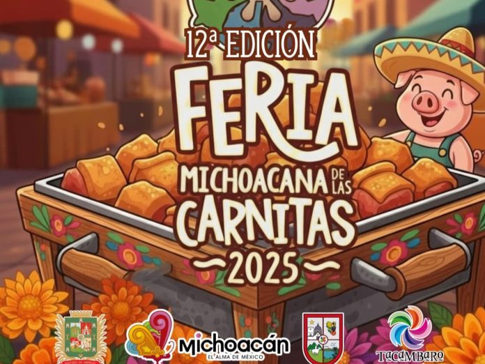 Morelia, Michoacán, 12 de noviembre de 2025.- La Feria Michoacana de las Carnitas de Tacámbaro llega este año a su edición número 12, la cual se realizará del 14 al 17 de noviembre en su plaza principal “Benito Juárez”, informó la Secretaría de Turismo de Michoacán (Sectur), dependencia dirigida por Roberto Monroy García.