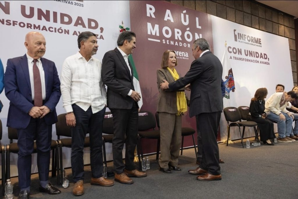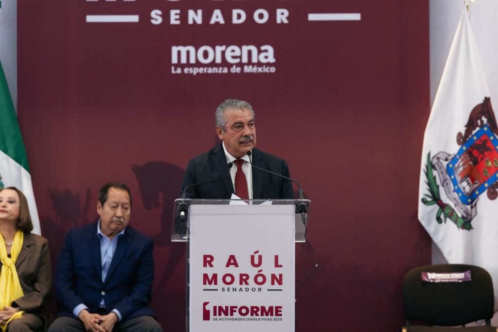 Morelia, Mich., a 19 de octubre de 2025.- “La transformación en México avanza de la mano de la Presidenta Claudia Sheinbaum; en Michoacán la vamos a consolidar”, aseguró el senador de Morena por la entidad, Raúl Morón Orozco, al presentar ante el pueblo su 1er. Informe Legislativo.